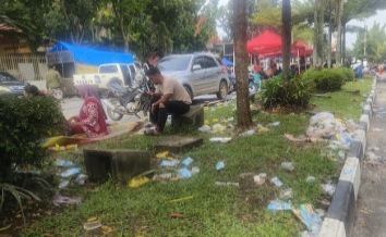 Demonstrasi Tolak Relokasi TNTN, Sampah dan Bau 'Pesing' di Jalan Cut Nyak Dien