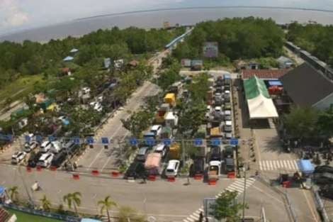 Pantauan di lapangan menunjukkan antrean kendaraan mengular panjang hingga ke luar area pelabuhan.