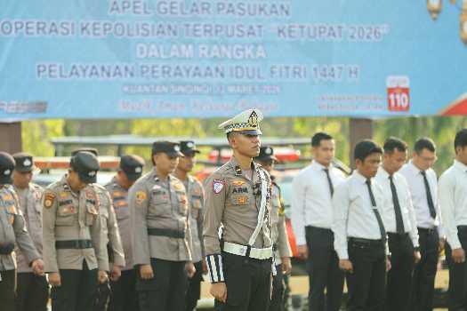Kesiapan ini ditandai dengan Apel Gelar Pasukan Operasi Ketupat Lancang Kuning 2026 yang dipimpin langsung oleh Bupati Dr. H. Suhardiman Amby, MM dan Kapolres Kuansing AKBP Hidayat Perdana di halaman Mapolres Kuansing, Kamis 12 Maret 2026.